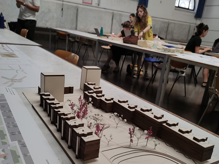 Giovedì 12 giugno 2025 si sono svolte le presentazioni dei progetti elaborati dagli studenti del Corso Roma – Madrid. Casa e città per Torrevecchia, che confluiranno nel Masterplan degli spazi collettivi. Nell’Anno Accademico 2024-25 infatti il Corso opzionale attivo nel Dipartimento di Architettura di Roma Tre e tenuto dai docenti Milena Farina, Valerio Palmieri, Andrés Cánovas e Sergio Martín Blas (ETSAM – UPM), ha proposto un approfondimento sul tema della casa collettiva moderna attraverso un lavoro sul Piano di Zona Torrevecchia. Lo studio dei percorsi di accesso dalla città alla casa e delle soglie tra i diversi ambiti ha prodotto una mappatura delle “gradazioni spaziali” nel passaggio dagli spazi collettivi agli spazi individuali degli alloggi, resa molto più complesso e articolato dalle trasformazioni e gli innesti intervenuti negli anni. La mappatura delle trasformazioni degli spazi collettivi, dei sistemi di accesso e dei fronti degli edifici ha prodotto una serie di elaborati utili all’interpretazione delle esigenze spaziali degli abitanti ai fini di una proposta di rigenerazione diffusa. Le proposte progettuali sugli spazi collettivi hanno lavorato sulla sistemazione generale delle superfici minerali e naturali, gli accessi agli edifici, le connessioni con il contesto, la densificazione delle aree sottoutilizzate dei piani pilotis con l’inserimento di nuovi servizi e alloggi, la riqualificazione degli attuali terrazzi comuni – oggi abbandonati – attraverso la realizzazione di nuovi servizi per la comunità.